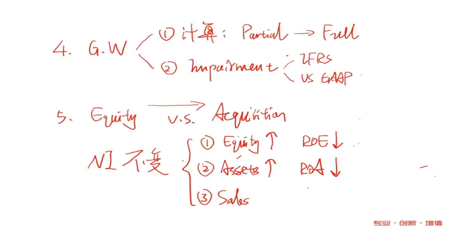 Equity method中的利润表会增加investmnet income =associate公司的NI (FV) *持股比例,而Acquisition method的利润表是母公司(BV)+子公司(FV) ,不明白为什么NI相同, 谢谢。