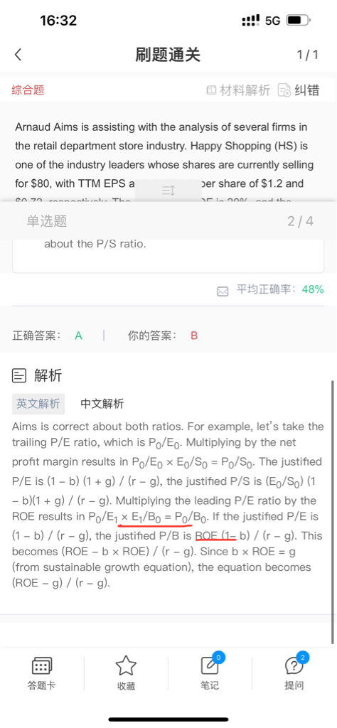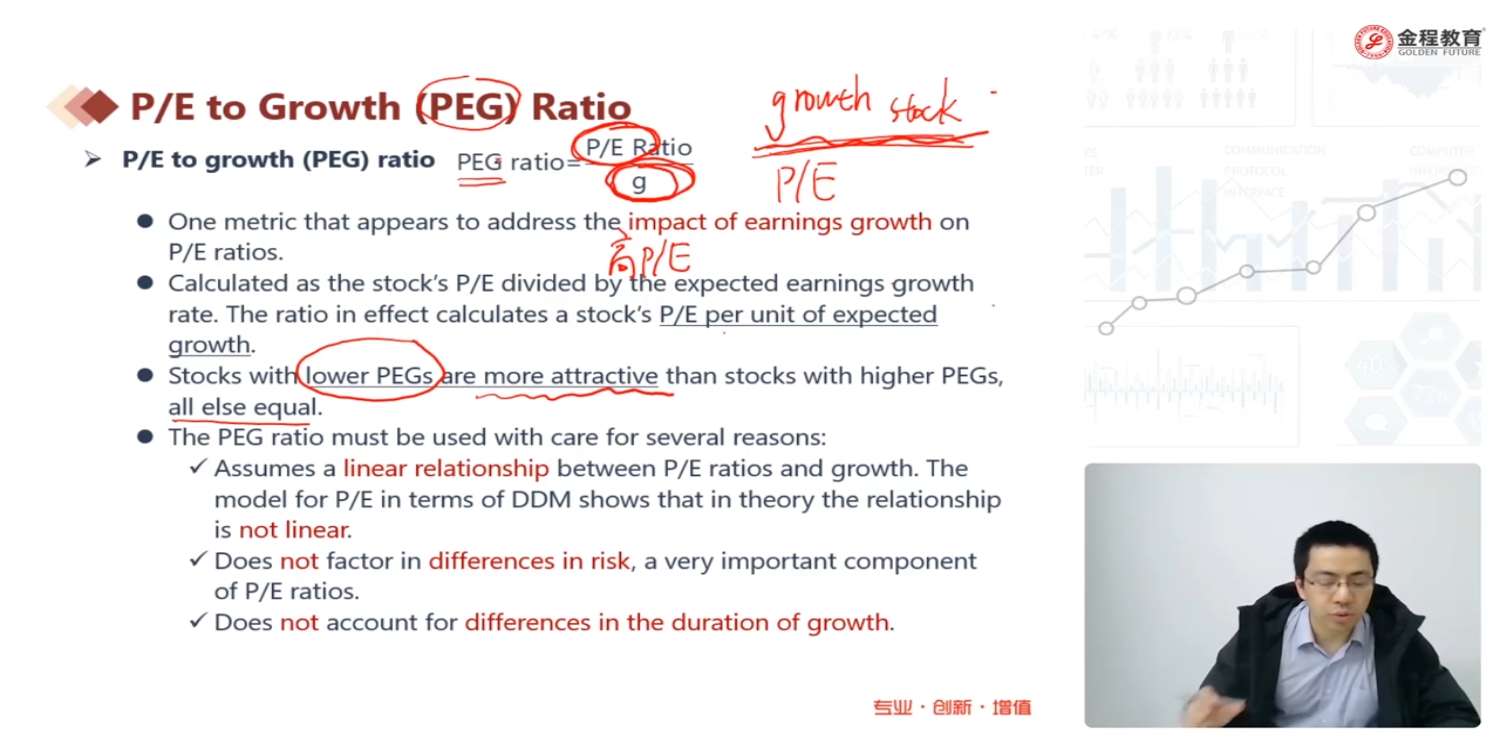 第五题,decrease in uncertainty about future inflation跟P/E有什么关系,我们从来没学过有公式关联这两者。C选项,earnings growth下降,分母降低,p/e上升