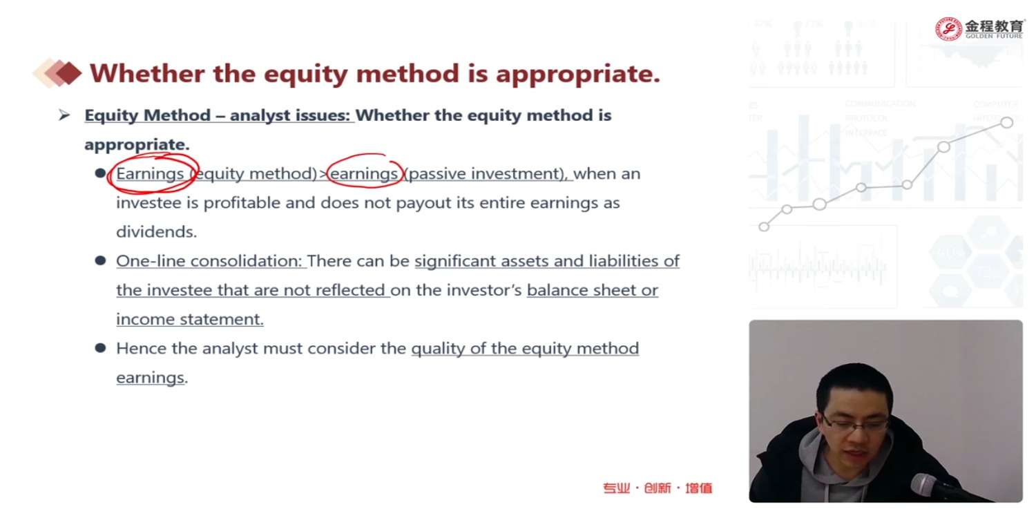 这里的第一条earnings(equity method)>earnings(passive investment)不是很能理解,可以麻烦老师再解释一下吗