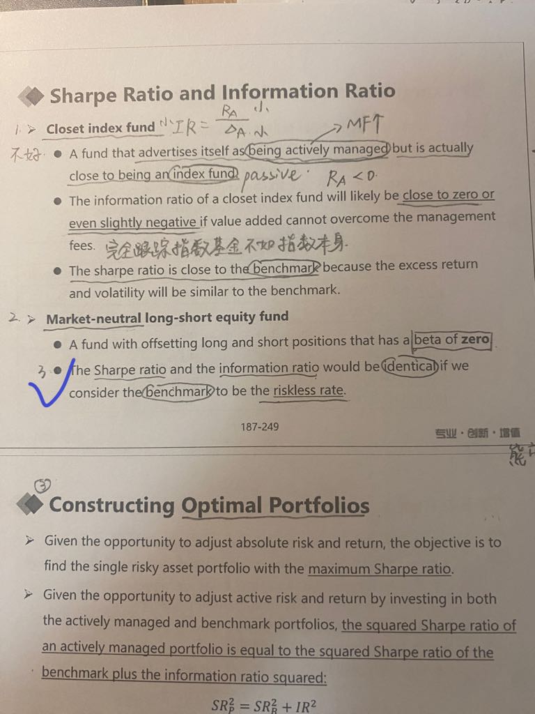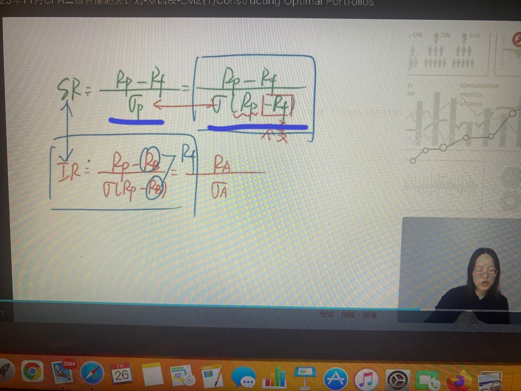 老师,讲这里第三点时,板书上Sharpe ratio的分母,一个是portfolio的标准差,一个是(portfolio减risk-free rate)的标准差,这两个怎么能相等呢?
