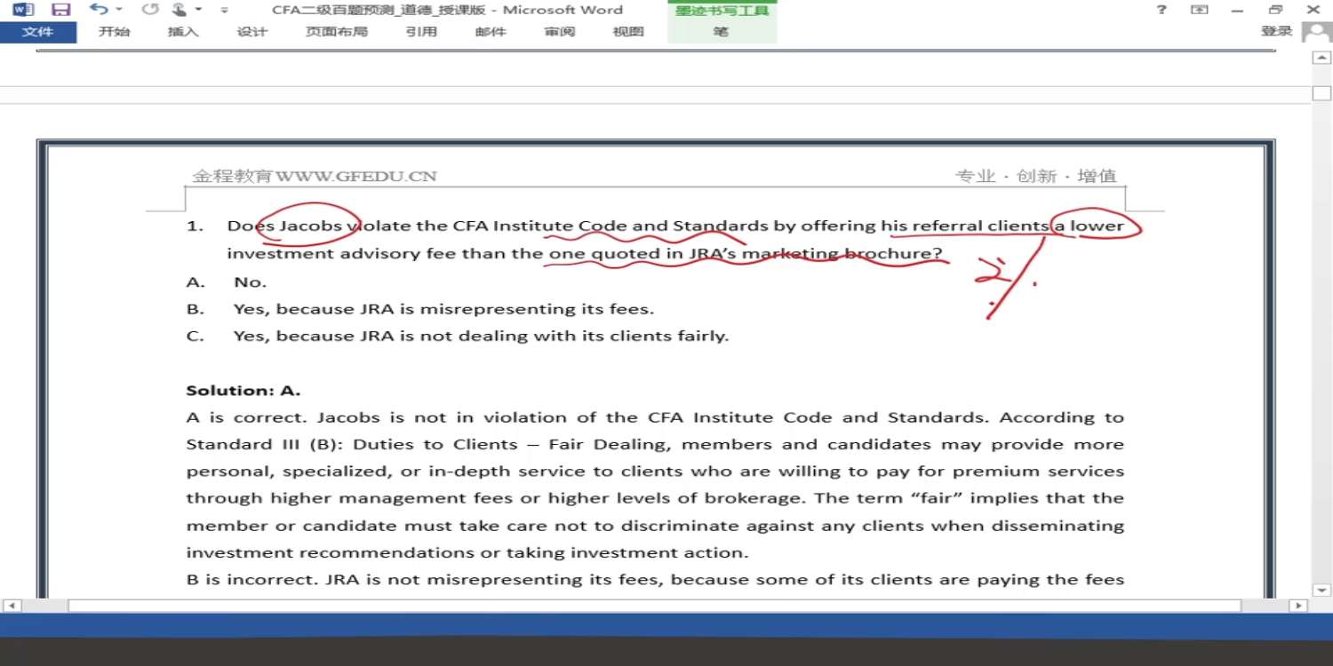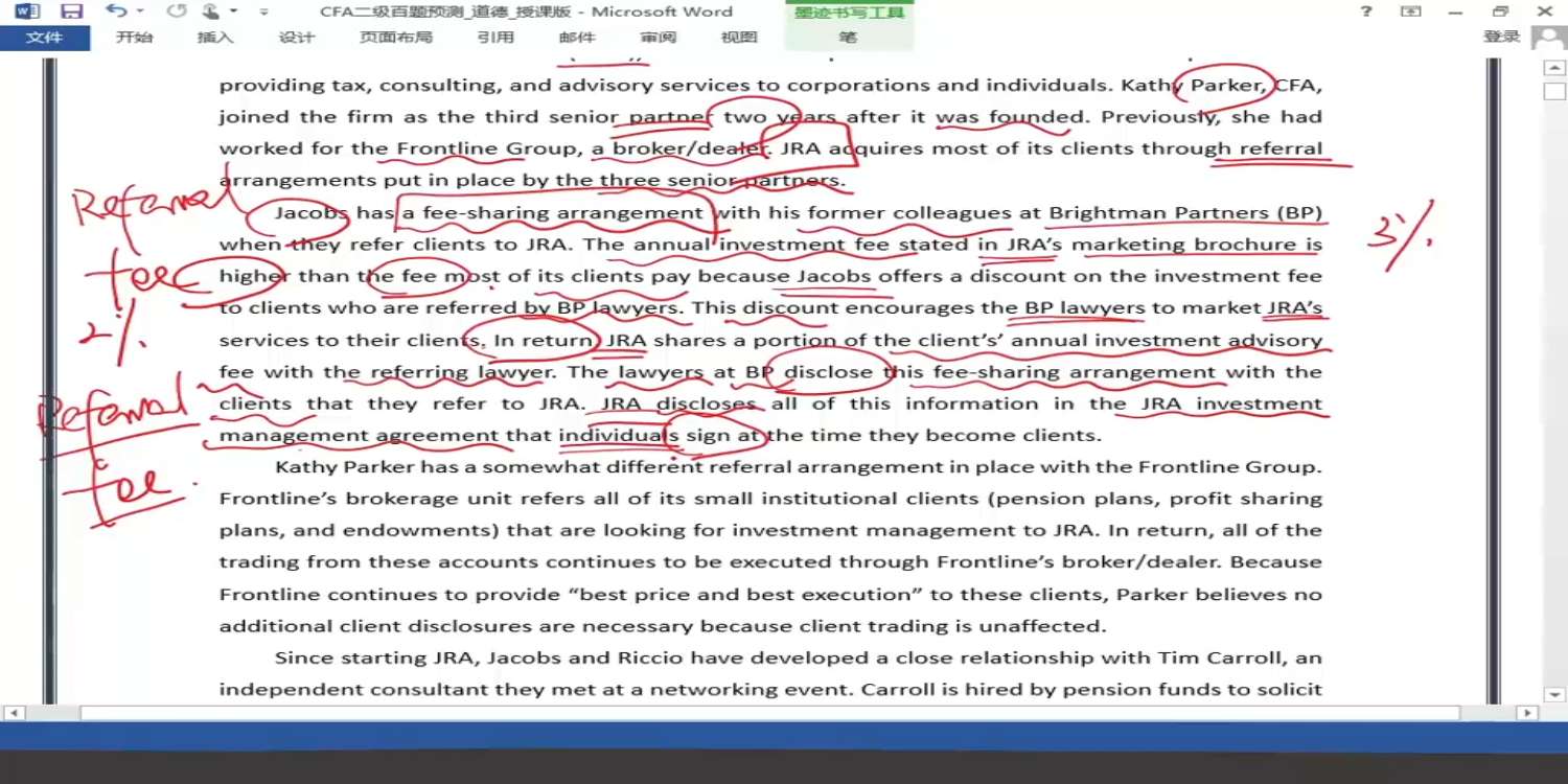 JRA disclose了这个有关推荐费的条款,客户要是不接受完全可以不签,第二题是在考时态吗