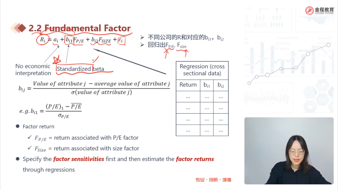这里的贝塔从公式来讲,等于delta Ri 除以 deta Return on P E,也等于PE的标准化结果,实际上这里是能推导出来这两个相等对吗?