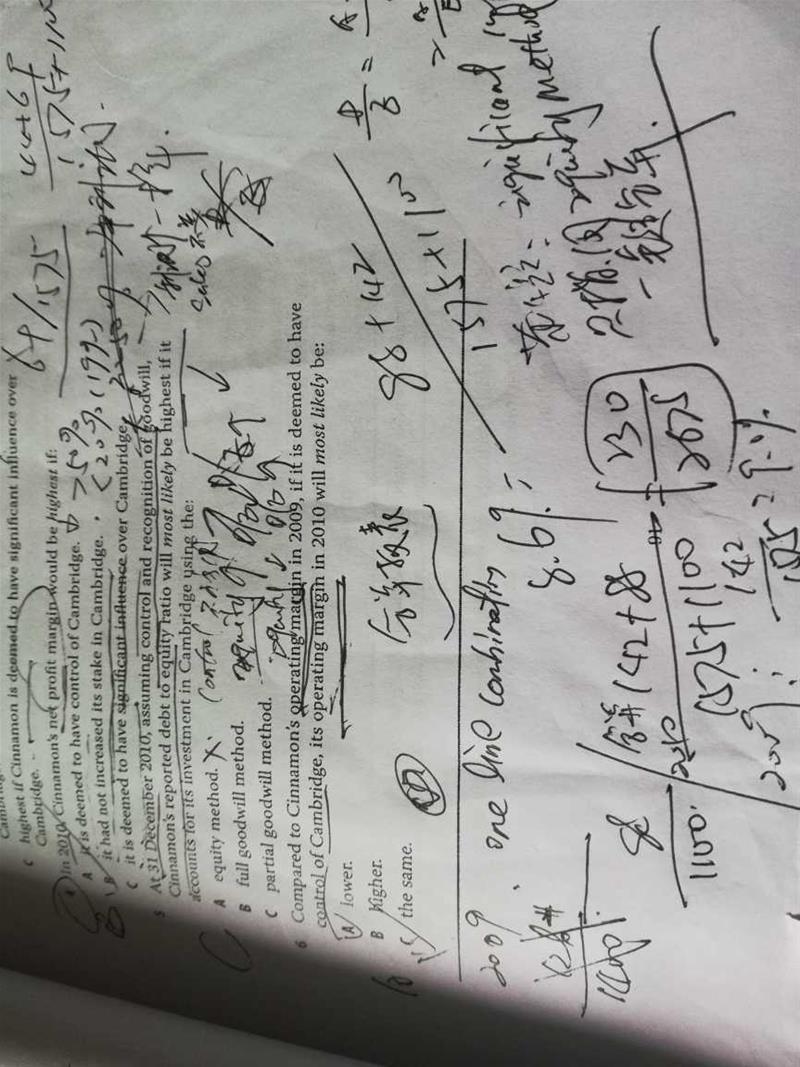 你好,原版书后题,这里答案,说CAMBRIDGE,OPERATING MARGIN 也求出来比较,88/1100,但是题目并没有问这个被收购公司吧,是比较CINNA公司在2009和如果2010收购法下求的经营利润率吧,