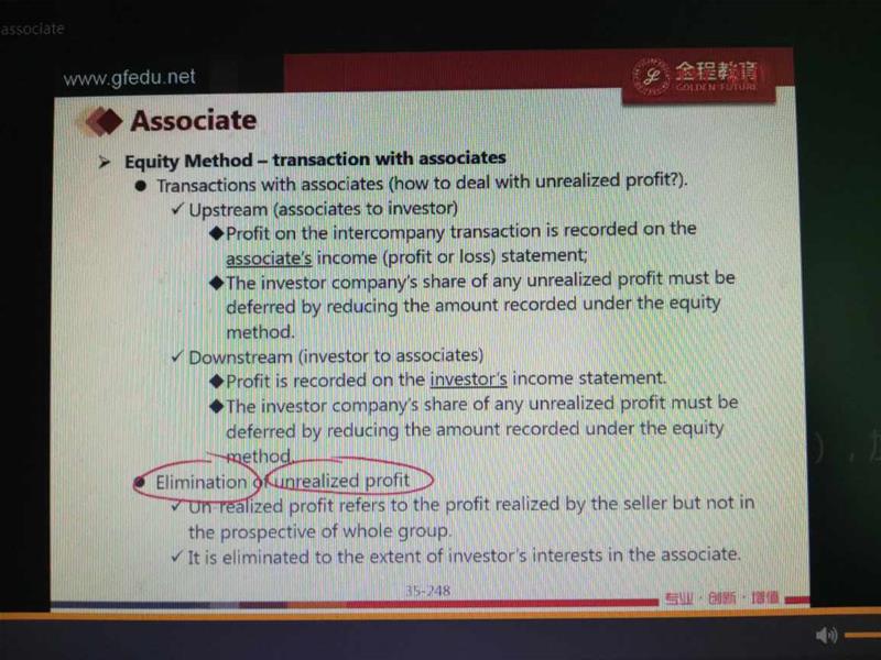 你好,还有EQUITY METHOD,计算关联公司交易为什么要删除掉? 关联公司交易(无论哪一方作为SELLER),也可能是实现的交易,例如东西真正销售了,也收了款项,这个例子很常见吧。那这里说的还有为实现的利润指什么?我们学了金融资产未实现利润为:东西可能市场价格变化了 但是股票没有卖出去。这里又是指什么呢,