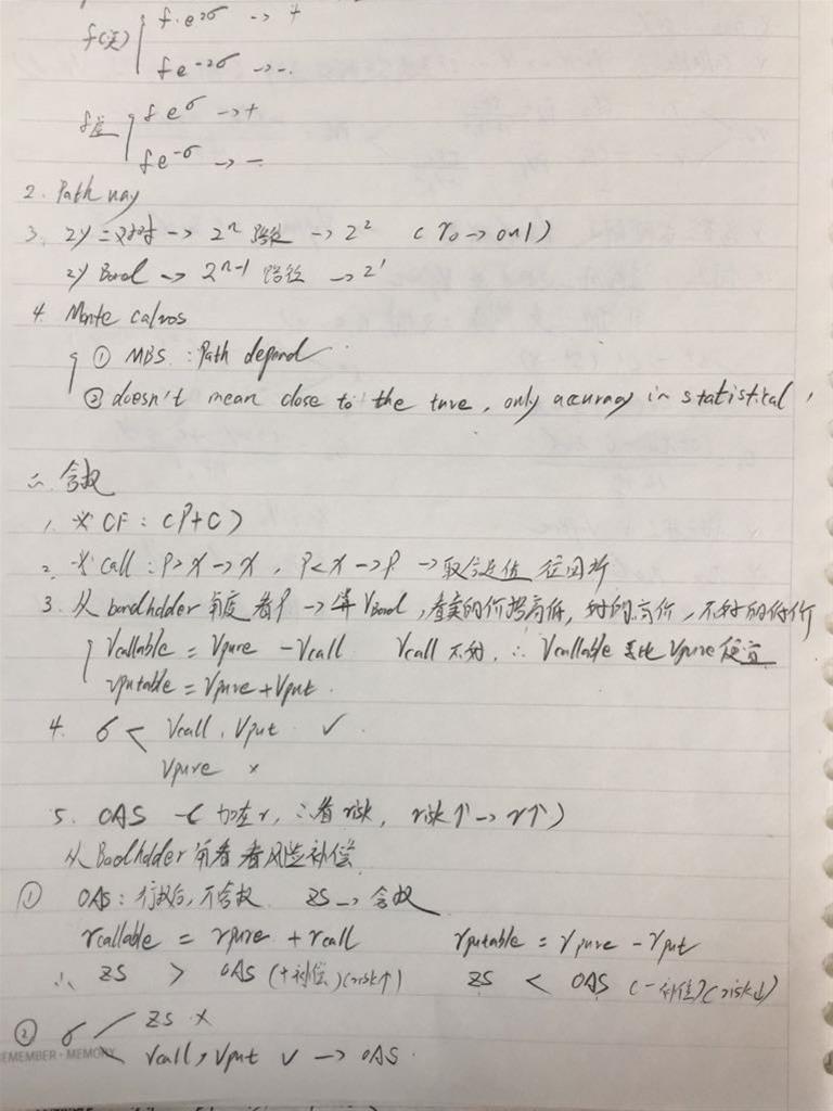 老师,含权债这里,一个是3,一个是5,这两个知识点您看我这么理解行么。有点晕。 callable债,因为含了call,不好,卖的便宜,所以Vpure-Vcall=Vcallable。 到OAS这里,因为是加在利率上,所以聪风险考虑,高风险高收益,callable加了call,风险高,r高,所以Rpure+Rcall=Rcallable