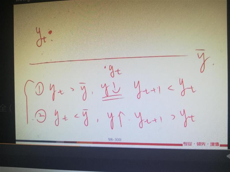 你好,这里是协方差平稳,提到均值复归,老师说今天的yt>均值,那明天(yt+1)就要小于均值, 但是实物中,是不是更有可能是:股票围绕均值上下波动,也可能是这样,连续几天逐步下降,然后再逐步上升... 协方差平稳,的假设条件,是均值.方差.协方差不变,是一组数据和另外一组数据之间吧,