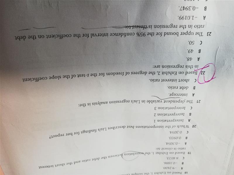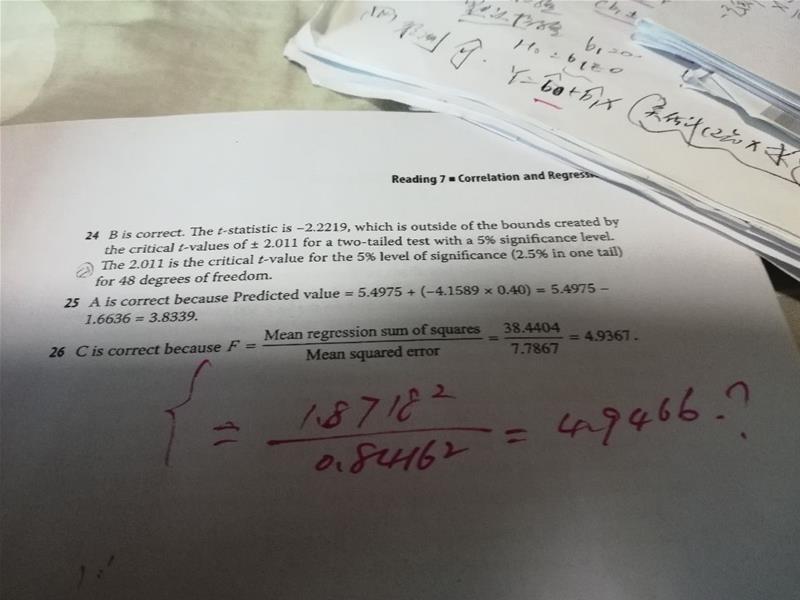 你好,关于自由度,我也是一头雾水,例如原版书后题第28页第22题,求针对斜率t检验的自由度是多少,N-1还是N-2,对于一元(K=1),这里我混淆了:1.单老师的课程,里面说,因为是求x和y的均值(分别形成),用了两组数列(x,对于y)所以N-2,另外一个老师(林正老师),说因为求斜率吧,两点成一条线,那就是N-2,貌似更好记一些,但是两个老师的原理我都没有理解?而本题答案,我更是怀疑了,说有两个参数,所以就是N_2了,但是对于截距检验根本没有讨论过,是不是这样解释有一些牵强吧,怎样把这些自由度记忆下来,而学到参数检验,求B1拔的标准差时候,其 自由度根据残差项来计算了,也是N_2。请帮忙分析,谢谢