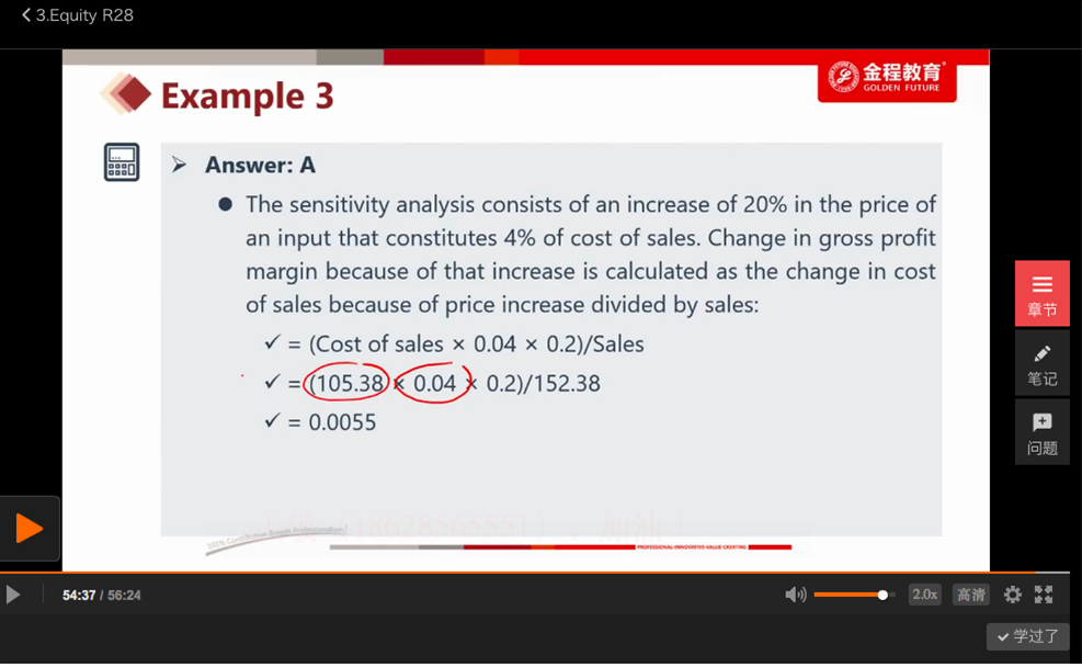 已回答老师你好,这道题我怎么不明白解析呀。 为什么COGS不是乘1.2? 为什么要用COGS*0.04*0.2的数值除以sales? 为什么COGS增加的比例就是gross profit margin降低的比例? 这三点都没明白。 麻烦老师讲解下。谢谢。