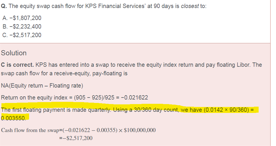 老师,这道题equity swap的估值,PVS收的部分没问题,但是对于PV支的浮动利率部分的算法不是很理解(黄色部分)?浮动利率在不是在每个reset day都是1么?