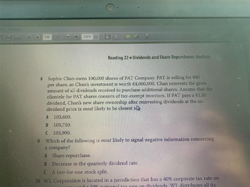 第八题,股利再投资是债转capital contribution 吧,应该对equity 没有影响啊,为什么除息会降低公司的股价呢