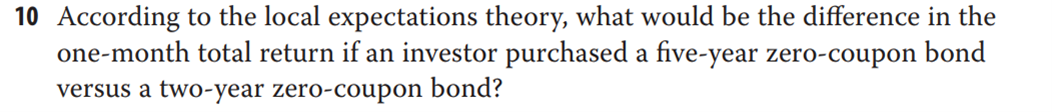 请问原书这一题为什么答案说asserts that the total return over a one- month horizon for a five- year zero- coupon bond would be the same as for a two- year zero- coupon bond.这里5yr的rate要更高吧?不应该有capital gain之差吗