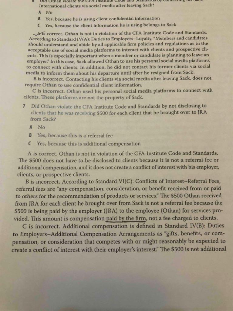 第7题,答案选了A。 Referral fee只能是公司向外部人员支付的介绍费,给员工的不属于referral fee,可以这么理解么? 另外,答案说500是compensation的一部分,因此不需要披露,那么additional compensation与compensation有啥区别?additional compensation不是需要披露的么?