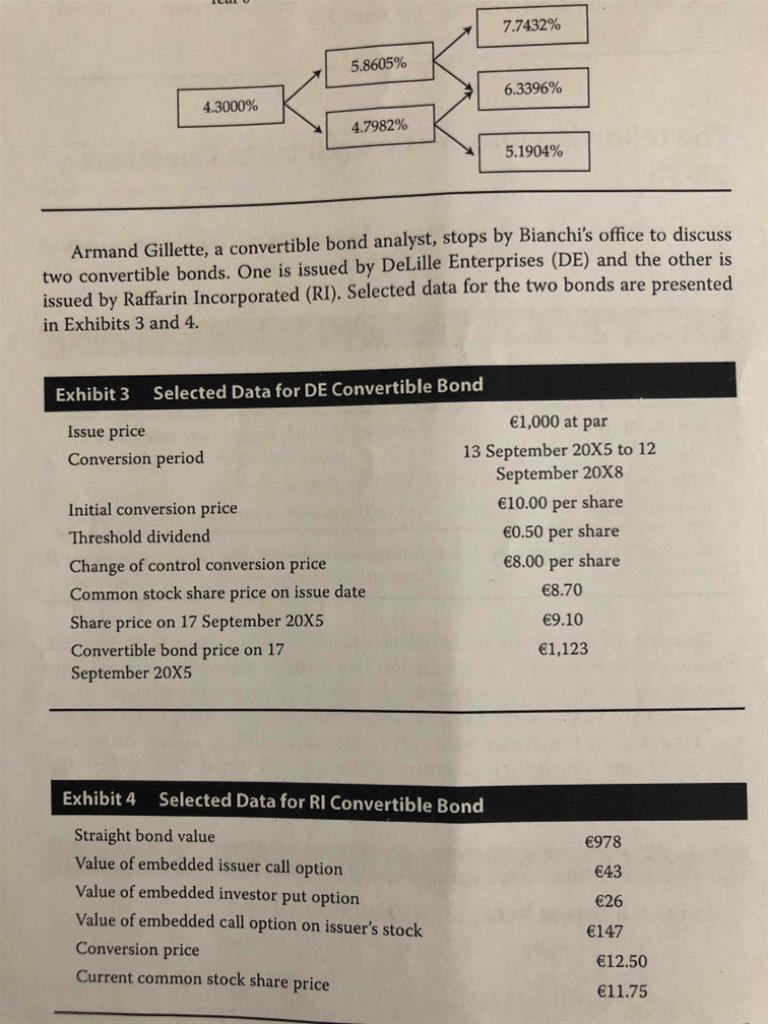 已回答第23题,答案先用spot rate数据,计算straight bond的内在价值,再用one year forwardrate数据,计算bond 4(callable bond)的内在价值,两者差额就是call option的价值。 我通过spot rate计算了一下理论的one year forward rate,结果与文中得one year forward rate不同,是不是说明书exhibit 1的利率数据中内在不合理?进而不应该永这里的forward rate数据来计算callable bond的内在价值?