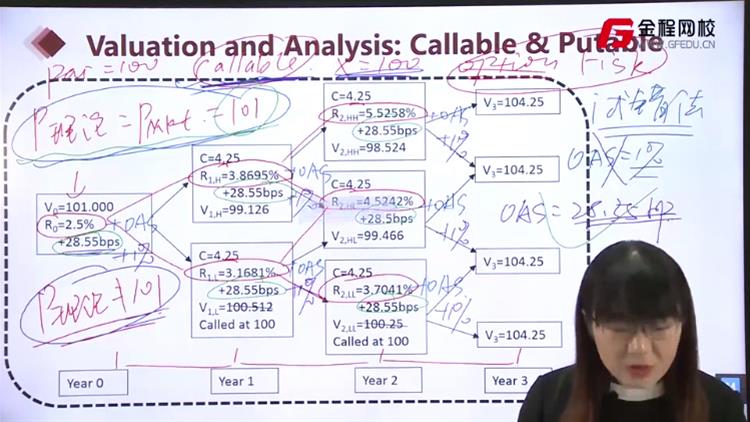 Callable/putable bond的Z spread,是假设不行权(无论利率变化是否触发行权条件)时,该债券与spot curve的spread,理解对不? 但是,该Z spread, 并不等于不含call/put 条款, 但其他条款都相同的pure bond的Z spread, 因为前者虽然不行权,但是权利是有价值的,而后者并不含有期权的价值。换言之,虽然两者现金流一样,但折现率是不同的,所以两者Z spread并不相同。理解对不?