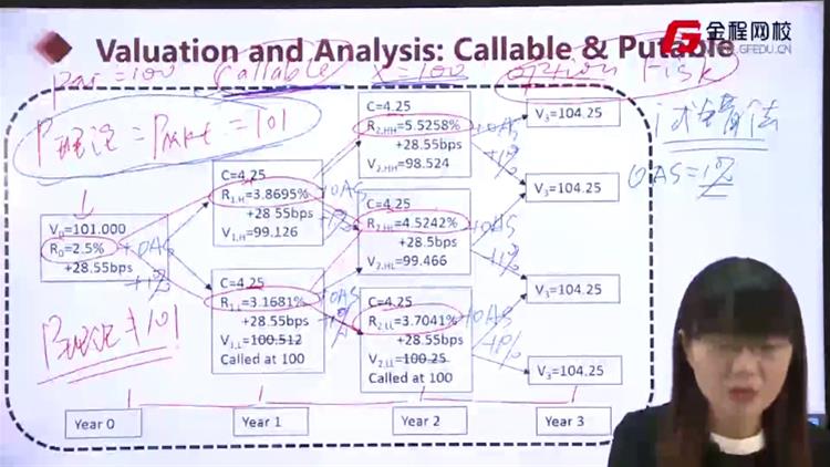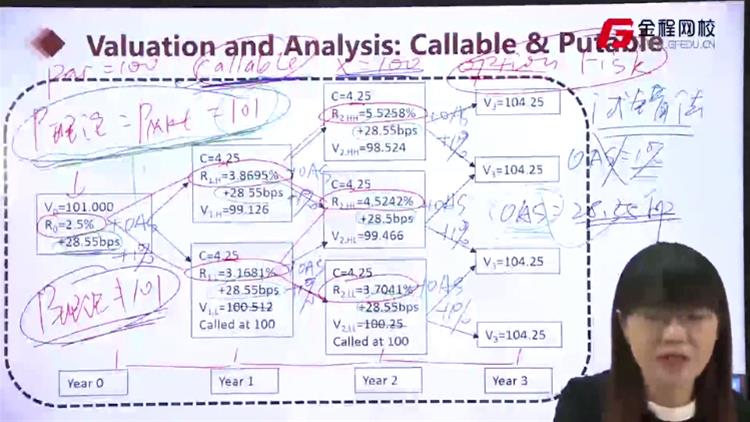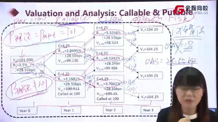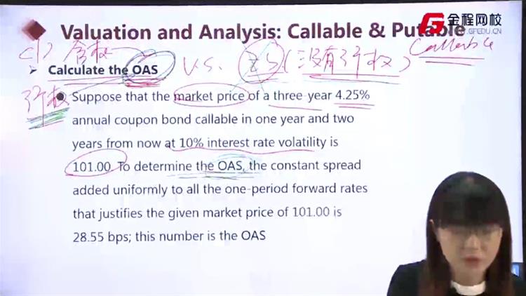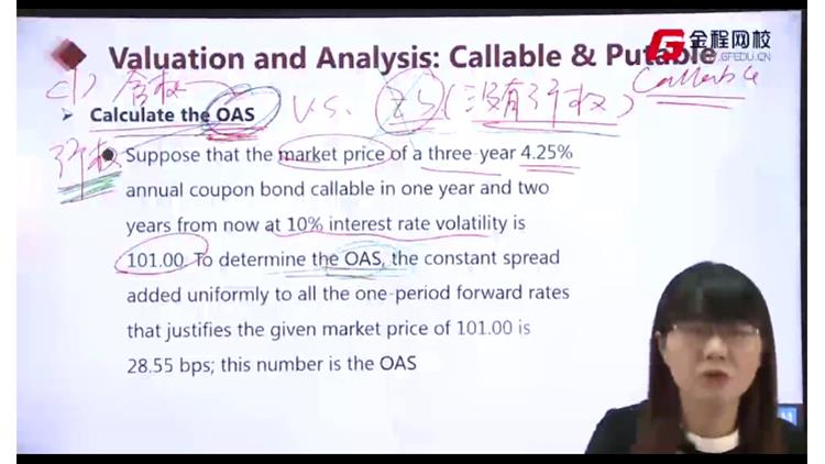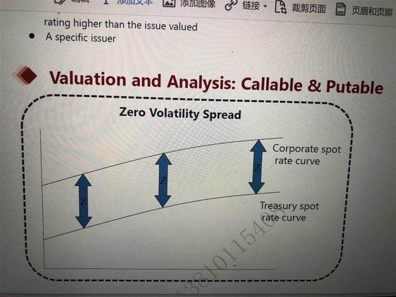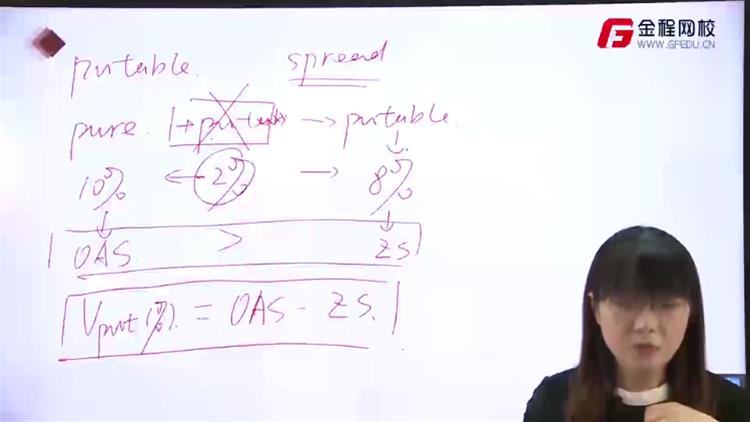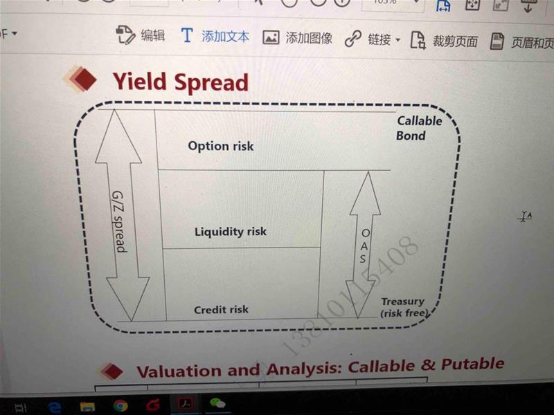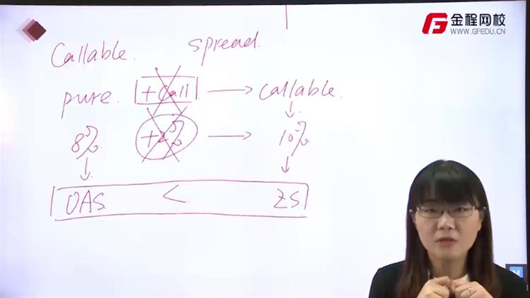 OAS应该怎么理解?老师讲了两种,我有点混淆。一是,callable或putable行权后的bond的spread,二是剔除option影响的callable或putable bond的spread。无论是哪种理解,都跟图中,pure bond的概念不一样啊? 或者说,OAS是callable bond先不考虑call因素,将call option条款从bond中剔除,计算的spread?