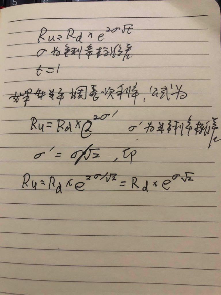Ru=Rd*e^2标准差*根号t 这里的标准差,是年利率的标准差? 如果二叉树是半年计算一次,那么这里的标准差就是年标准差乘以12开根号,对吧?