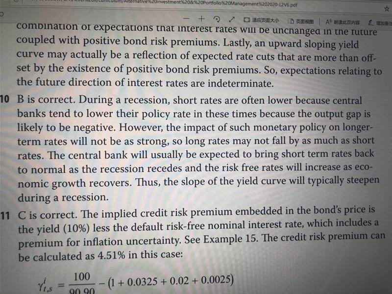 第10题,讲义中说an inverted yield curve as being a predictor of recession,那为什么第十题不选inverted curve要选steepen呢?