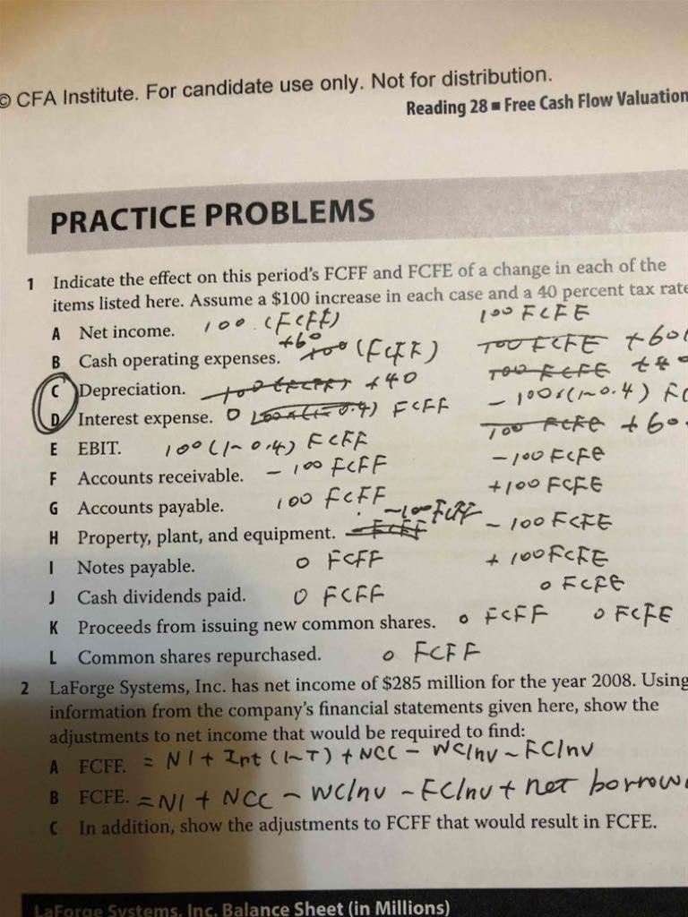 第1题,depreciation和interest expense的影响是什么? 其中,答案认为interest expense的提高对fcff没有影响,这不对吧?FCFF=CFO+int*(1-tax rate)-FCInv,int增加,不是会增加FCFF么?