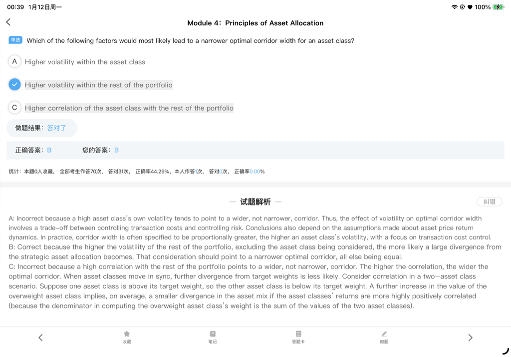 未解决根据LM8的内容:systematic:系统化的再平衡,权重调整。规定range,超出范围后调整。风险越高的资产,波动越大的投资,设置的range越宽。例如calendar和percentage-range。但是根据LM3: Overview of Asset Allocation中的Strategic considerations in rebalancing再平衡,波动性越高,需要设置窄的range。这两个结论相冲突,如果是风险越高,根据LM8是更宽,根据LM3是更窄,所以应该如何设定range?