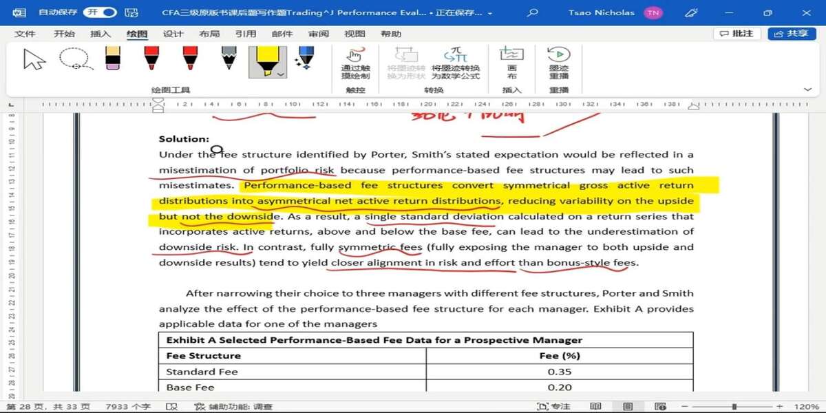 这里的gross active return和net active return与题目的关联在哪?从哪里定性到这个问题的,我认为关键点是“asymmetrical”,是否答出asymmetrical就可以得分了呢?