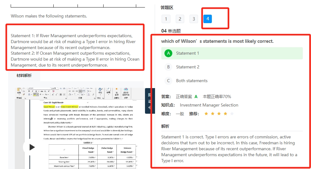 Statement 2: If Ocean Management outperforms expectations, Dartmore would be at risk of making a Type II error in 【not】hiring Ocean Management, due to its recent underperformance.