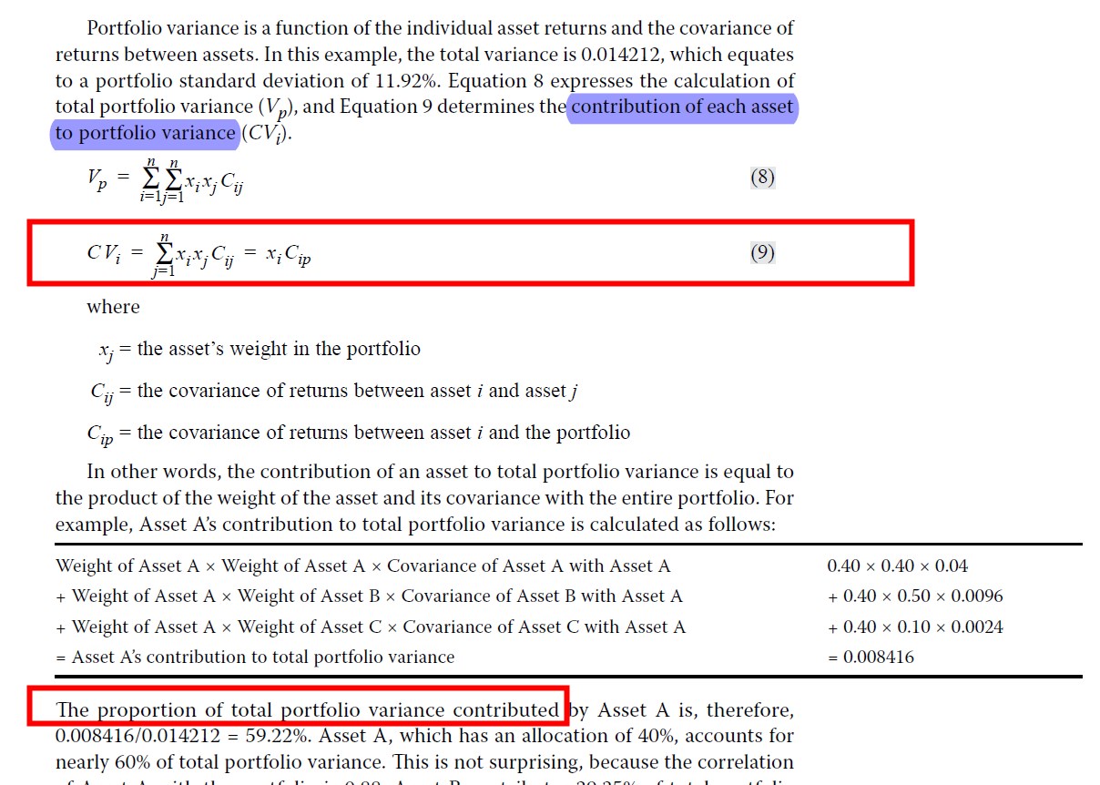 Q2,“the contribution of Asset 2 to Manager C's portfolio variance”这个得到的是一个具体数字,而不是一个比值,对吗?指的是具体的Asset 2所带来的variance,而不是Asset 2对于整个portfolio variance的贡献占比?为什么叫“contribution of ... to...”,令人费解,竟然不是指风险比重