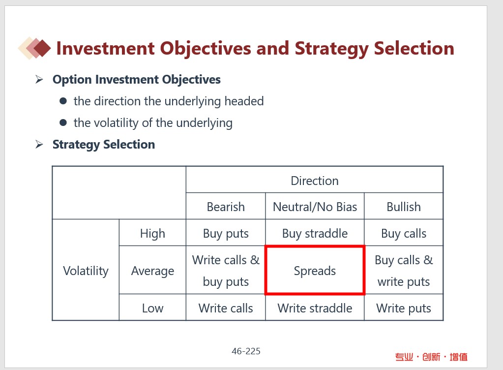 2. 关于calendar spread,要改下,中间是spread,可以是bull spread或bear spread。如果direction 是neutral偏bearish,那么可以是bear spread,如果是neutral偏billish,那么是bull spread