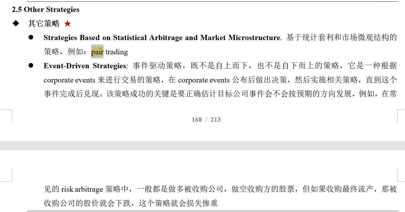 涉及到了pair trading,主要是另类投资里讲到的投资策略