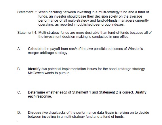 Statement 2:distressed securities strategy的杠杆率通常较低或者适中,由于这个策略内在就有波动性(不确定性)和看涨标的资产,对冲基金经理会采用适度的杠杆(通常投资资产净值的1.2至1.7倍),并使用衍生品对冲的杠杆(带来的风险)。因此,高利率不益于实施该战略。