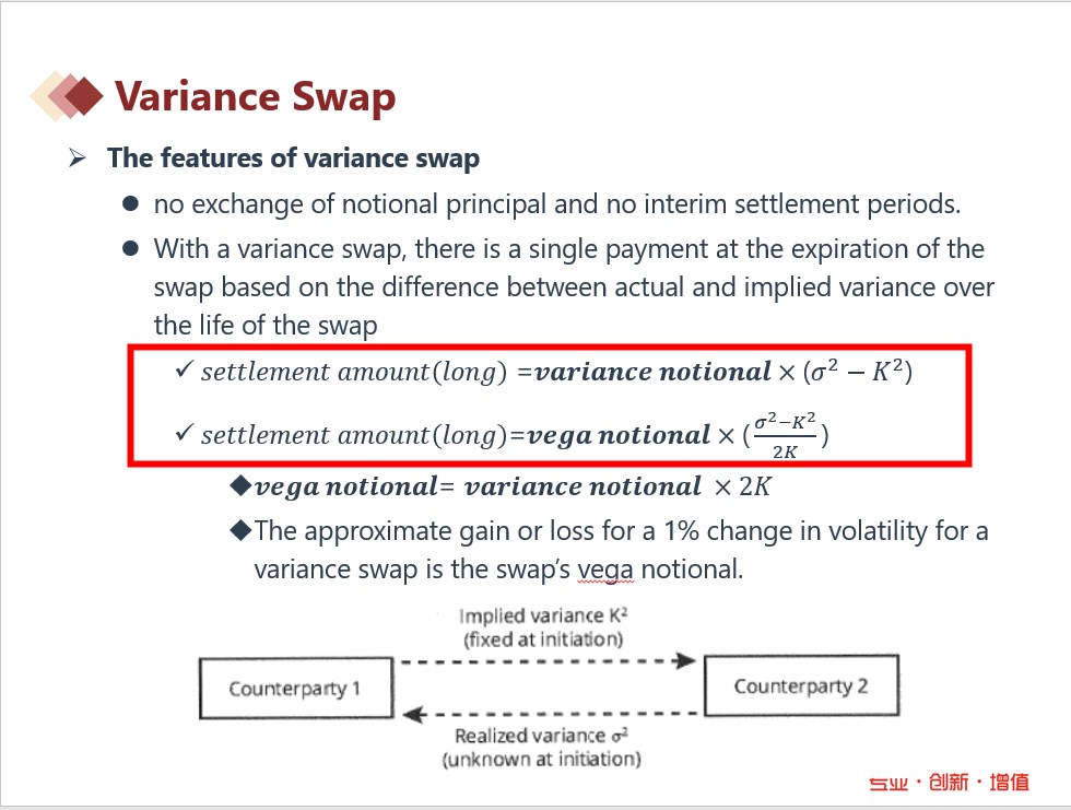 同学,上午好。 从variance swap公式来看,long variance swap是收浮动σ,支固定K。视频里应该是说反了。