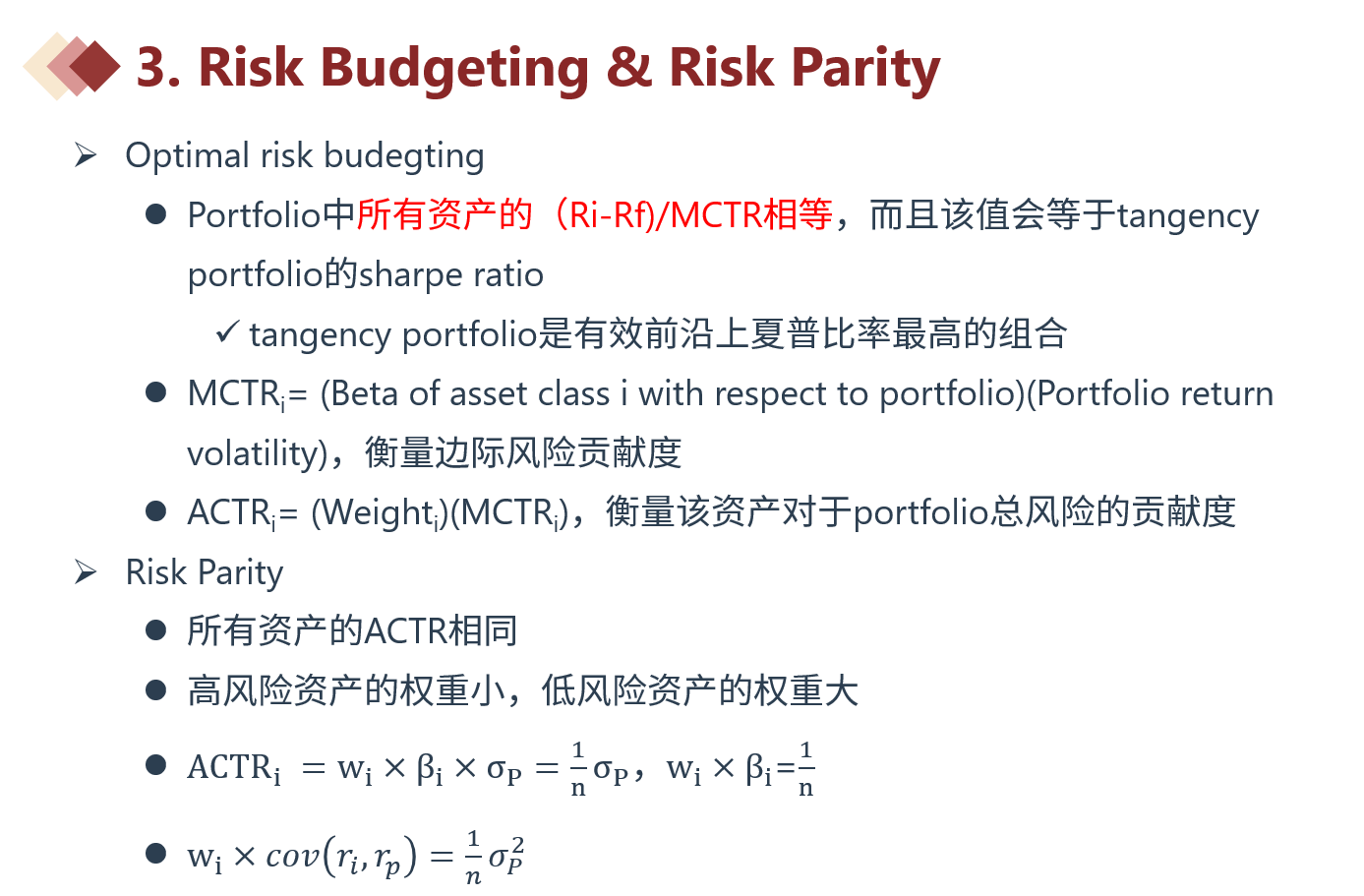 老师,题目哪里可以看出是portfolio是optimal呢,optimal时the excess return to MCTR=SR课上讲到过吗