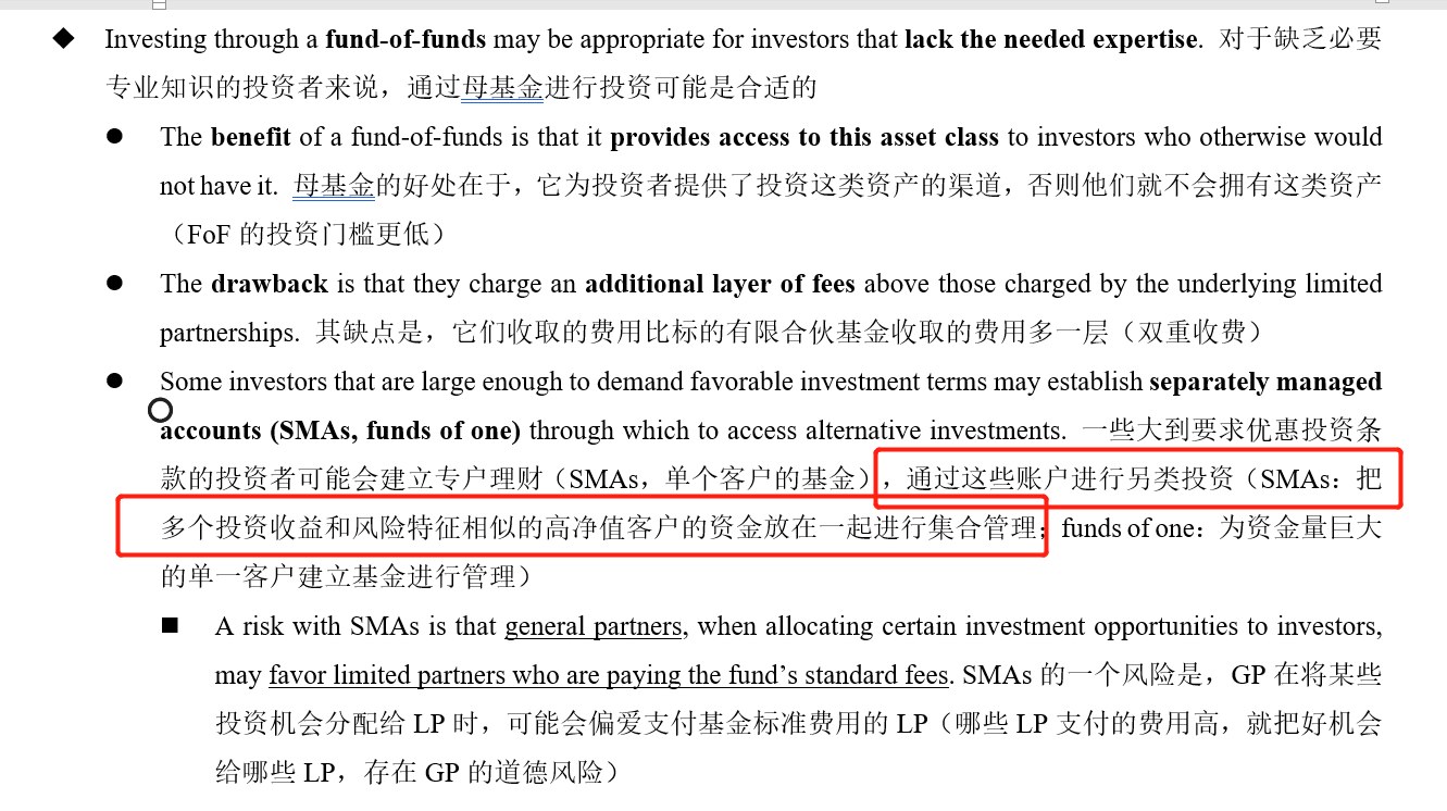 SMA是为了单个客户LP开设的投资账户,另类投资管理人GP通过SMAs帮助LP进行另类投资,属于私募