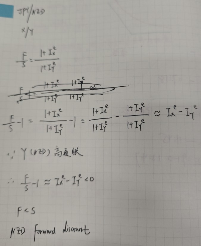 这道题是通过PPP公式推导,具体见截图。所以NZD在定价上的forward discount,预示NZD的spot汇率未来可能会下跌。