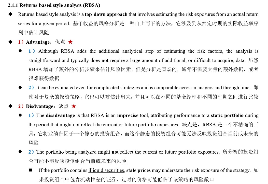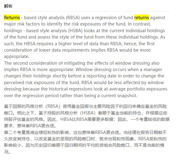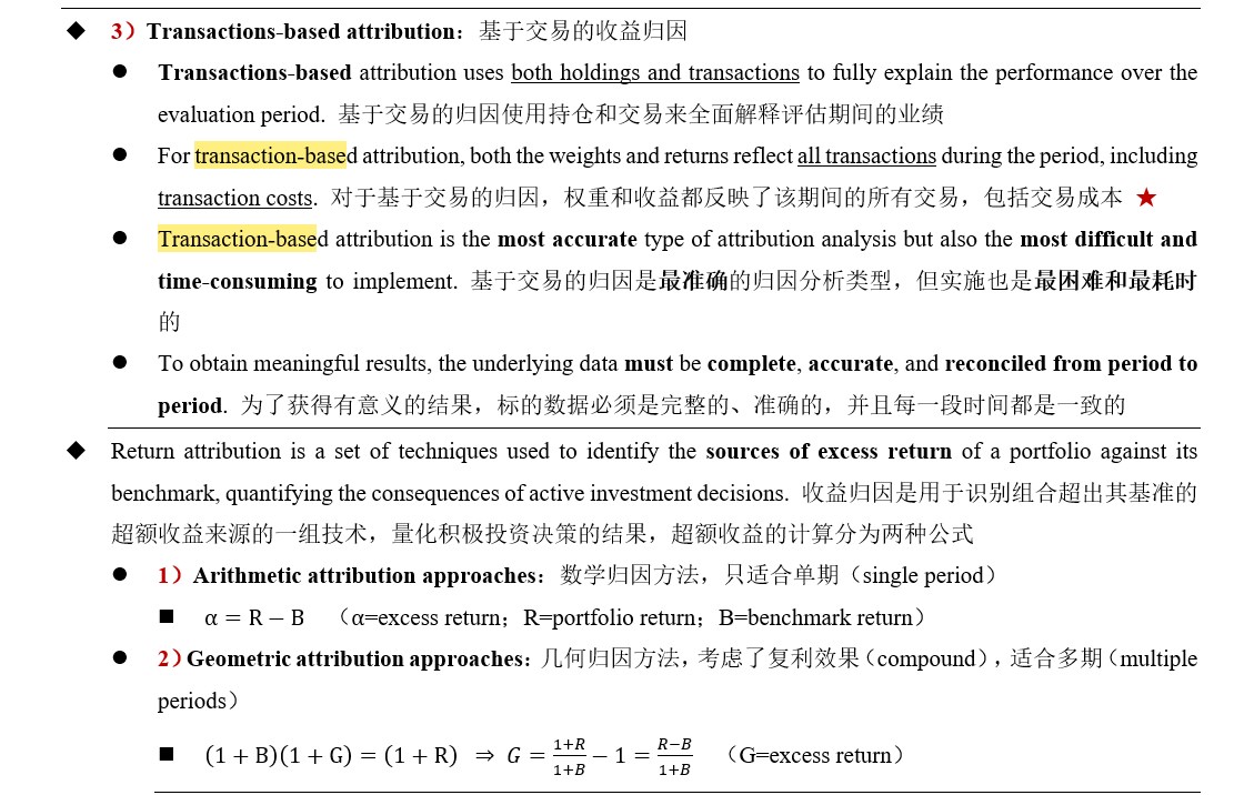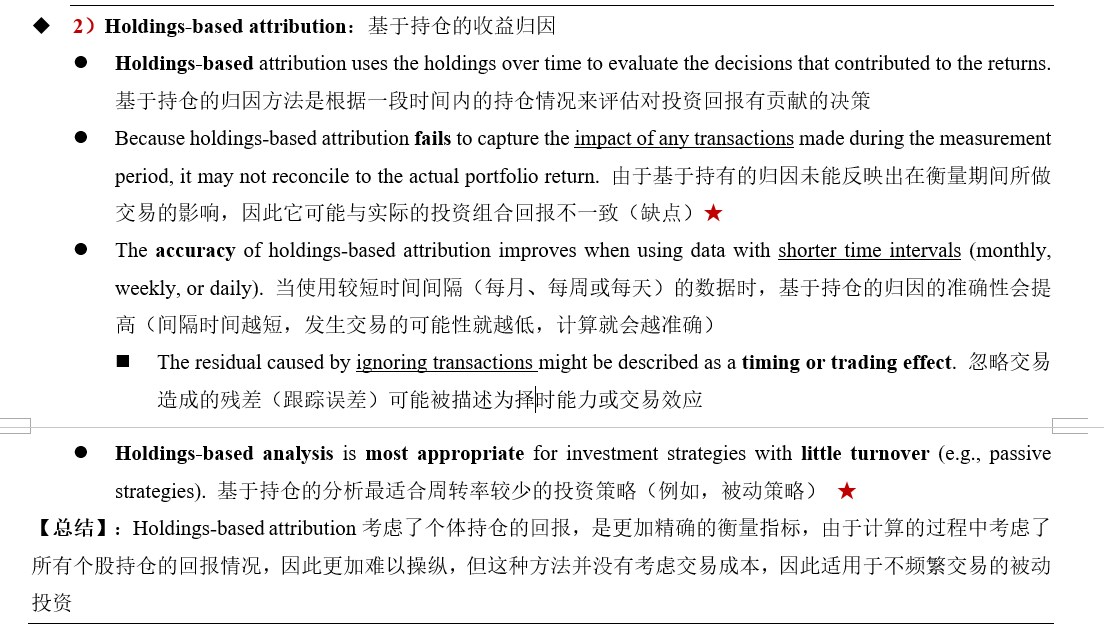 Holdings-based attribution,return-based attribution是业绩归因的知识点