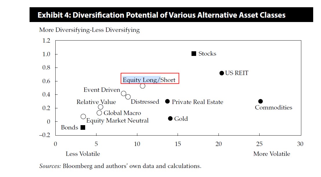 equity long/short funds对应的volatility并不是非常高,研究的投资标的也不是low-volatility