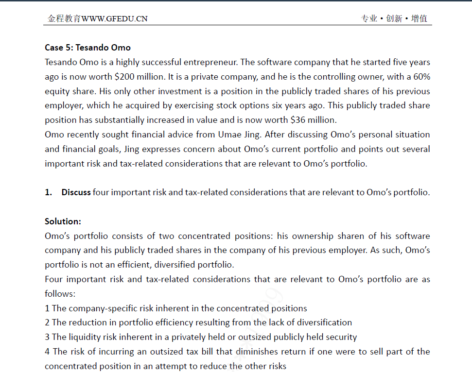 个人IPS原版书课后题 145页-147页11-14题(关于管理PE的集中度风险,税收考虑的)的答案老师可以提供下嘛?答案书本里面没有哦