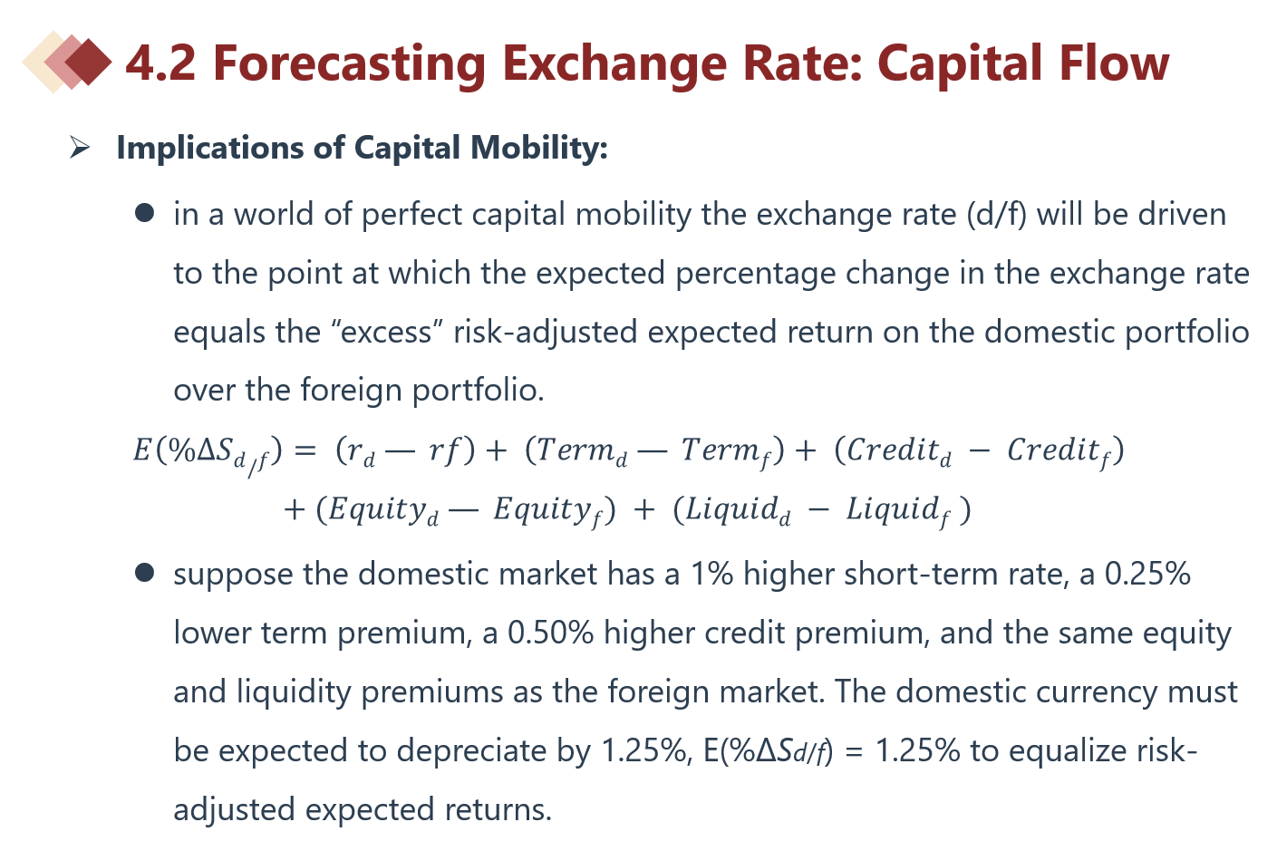 同学你好,题目问的是汇率的预期变动,这个就是直接根据课上讲的公式,预期汇率变动幅度约等于两国利率之差加上各个risk premium之差,其实就是投资于两国资产的预期回报率之差。具体公式参考下图