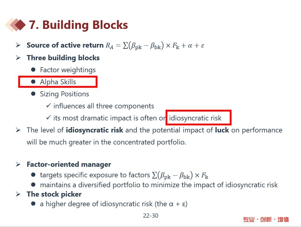 老师好,(1)考试会让识别alpha和idiosyncratic return嘛?(2)讲义里面一开始提到alpha是return from identifying mispricing,后面又提到stock picker选手的idiosyncratic risk 比较大,选股型选手主要就是发现定价错误的机会呀,能力圈应该在alpha,按照讲义上意思,选股型选手的收益主要就是idiosyncratic return,那就是noise或者luck,这不就否定了这一类策略基金经理的价值了吗?