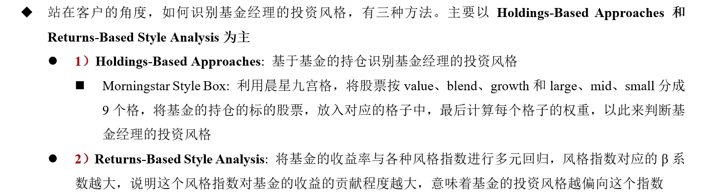 Holdings based style analysis 依靠的是t某个时间点的持仓情况,适用于调仓频率较低的基金