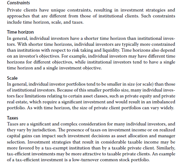 本题考察的其实就是个人投资者的constraints,投资经理在为客户考虑投资另类资产时,可能遇到的挑战。