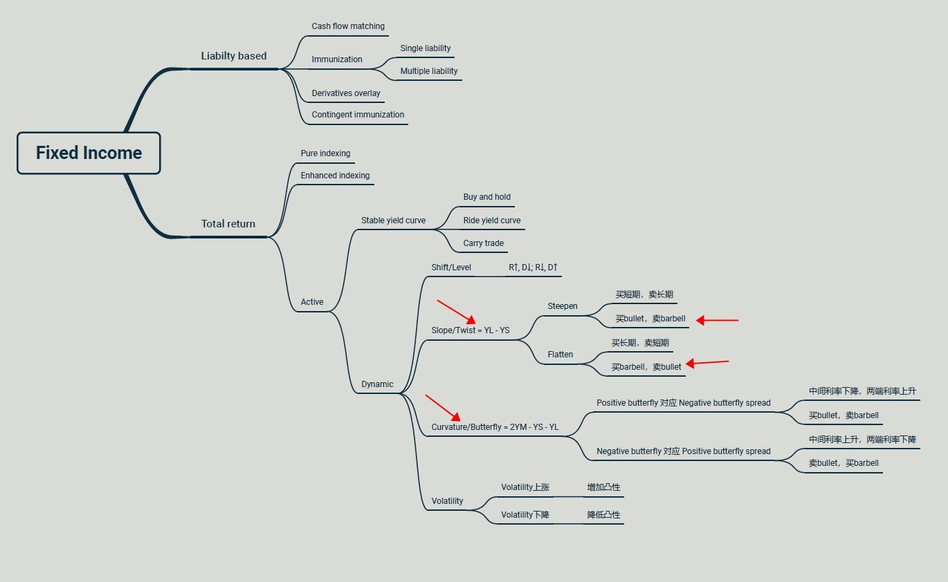 这个可以当作结论记忆:收益率曲线变平坦,barbell要比bullet表现好,选barbell。收益率曲线变陡峭,bullet要比barbell表现好,选bullet。
