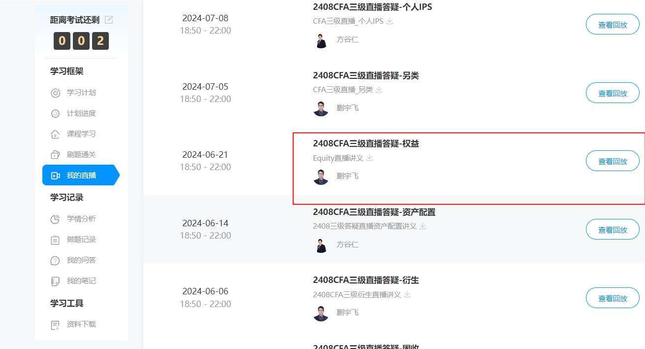 直播在课程里可以看到,如下图所示