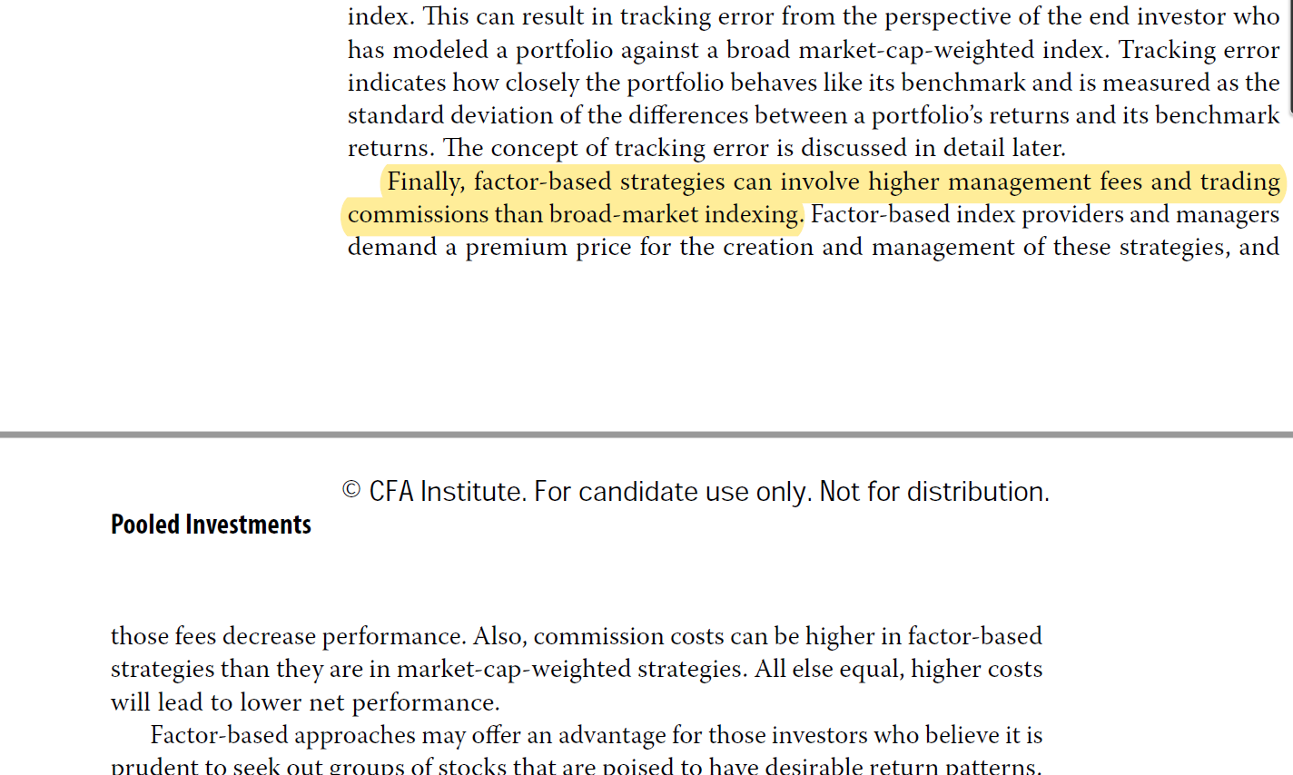 这节课最后的缺点只需要记住factor based strategy 有更高的management fee和commission。也是出自原版书。