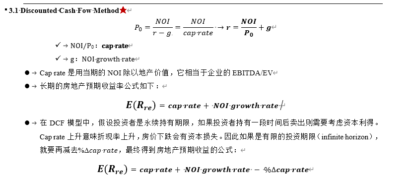 cap rate 与折现率正相关,cap rate 增加,折现率上涨,资产价格下跌,预期收益下降。
