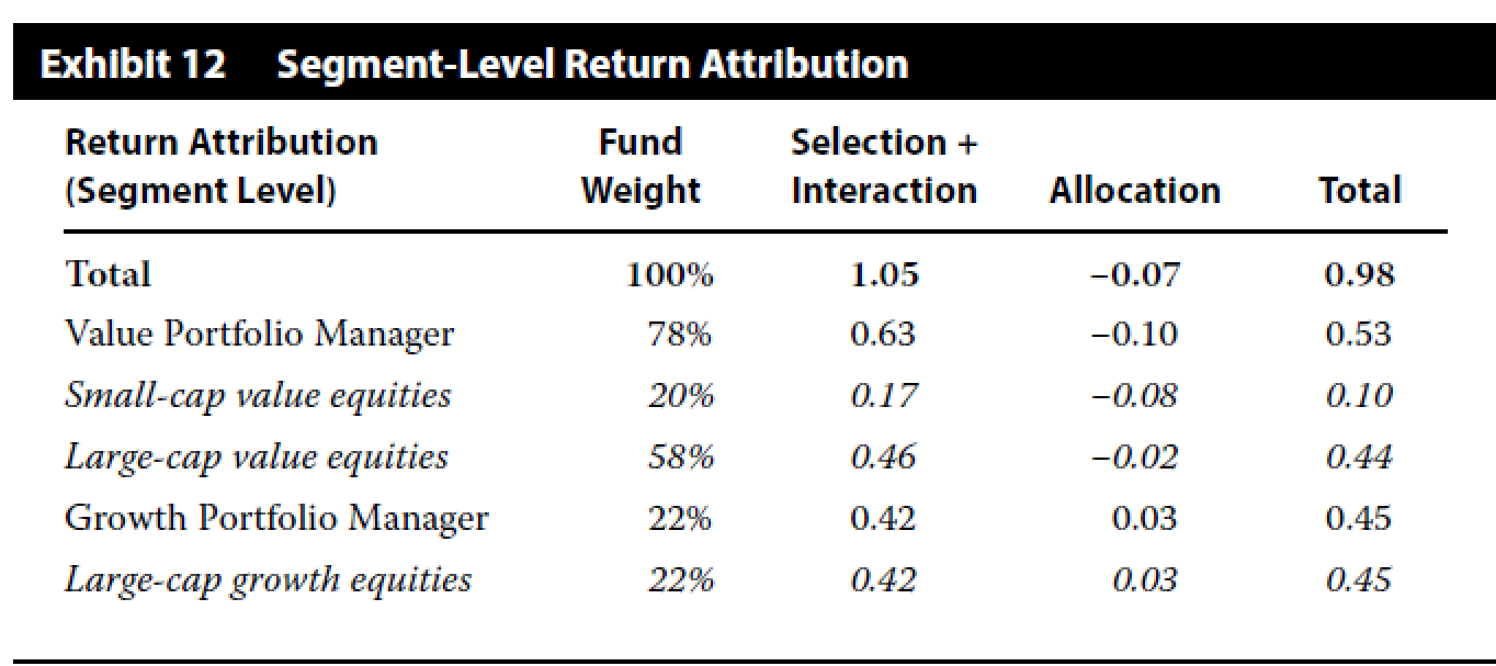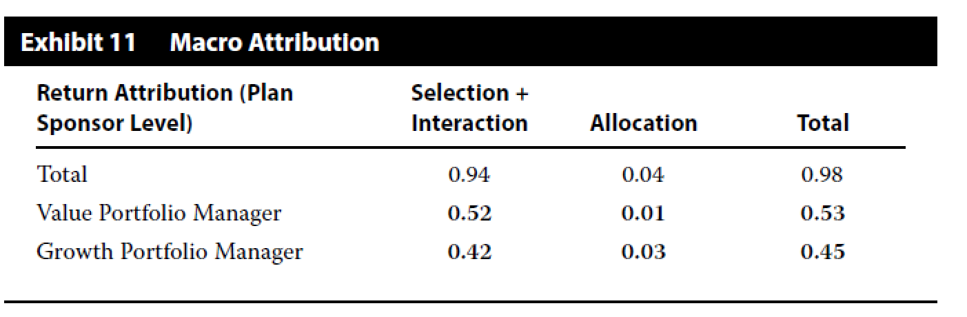 macro attribution看的是sponsor的资产配置,以及对manager的选择。不会去对manager下面的板块进行归因分析的
