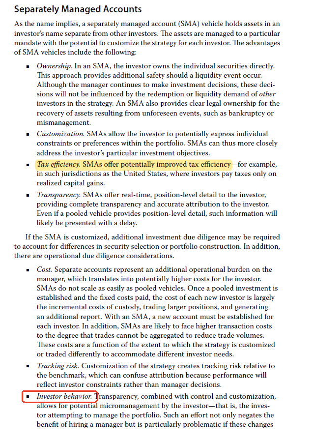 investor behavior到底是SMA还是pooled vehicle的特点?哪个不受投资者的行为影响呢?