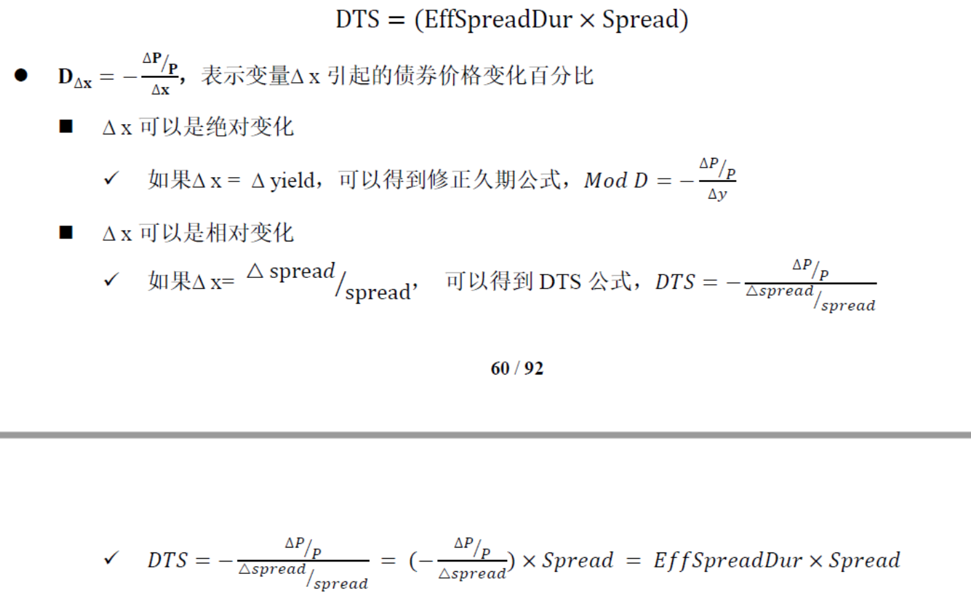 然后,低评级债券,用DTS(duration×spread)衡量spread风险。因为低评级债券,spread变动幅度非常大,所以用spread变动百分比来表示spread的变动。