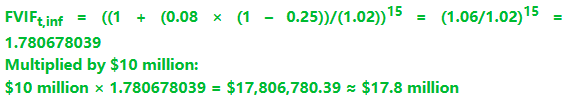 第二问是否需要考虑将利息再投资,也就是1+8%*0.75/1.02 * 10million作为整体,去乘15次方