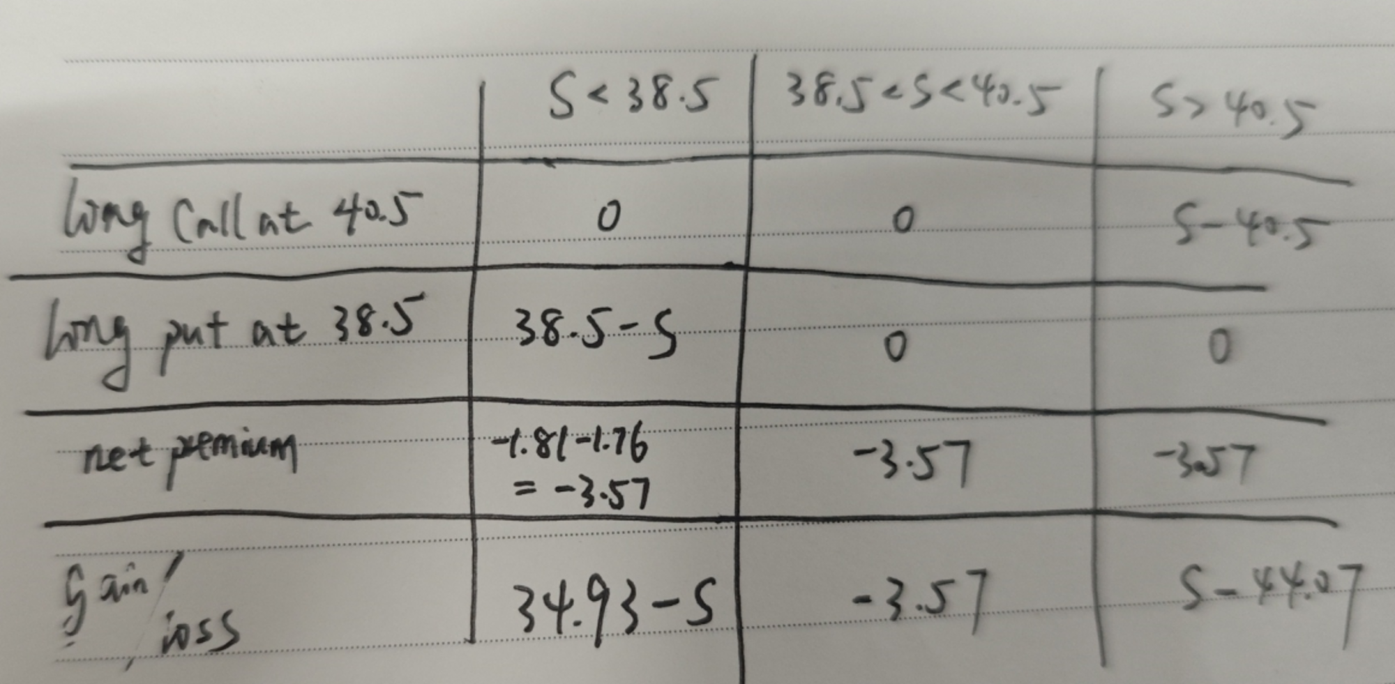 具体计算breakeven见截图,breakeven price分别是34.93和44.07