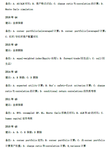 asset allocation的casebook2010年-2018年哪些题目不需要做呢?